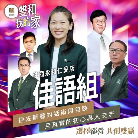 組長劉佳語說:「我自己在 #都營團隊 待了很久,很幸運在 #住商永和仁愛店 有機會用不同的角度和這麼多專業、優秀的夥伴一起打拼,房地產業領域非常廣,大家有各自專精的部分,每個組員身上都有十八般武藝,組合起來就像是個房仲寶庫,彼此交流共同成長。」