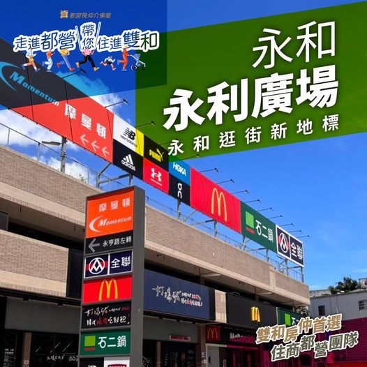 「#永利廣場」就位於永和的 #永利路 上,自2022年底開幕以來,已經成為永和居民日常逛街休閒、約會聚餐的好去處。有 #全聯超市 能採買生活百貨與新鮮食材;有 #麥當勞、#石二鍋 和大小美食攤位,能滿足全家人的味蕾;還有 #曼摩頓運動休閒生活館 及 #假日市集,能享受時尚治裝的購物樂趣。