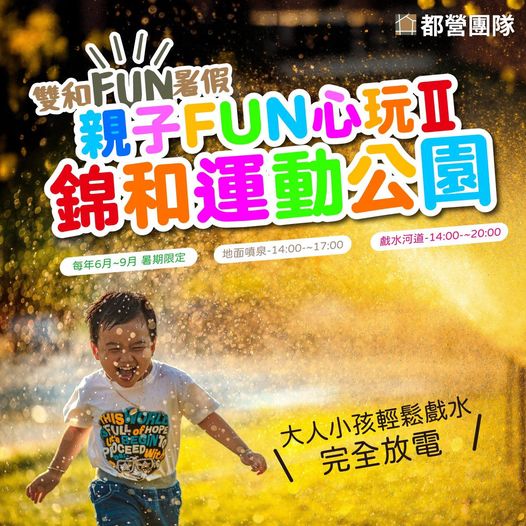 #都營團隊 特別推薦 #錦和運動公園 夏季限定的 #地面噴泉 與 #戲水河道,讓您在中和市區也能開心玩水,水池的深度只到腳踝,旁邊也有廁所可以換衣沖洗,免費入場的城市水樂園,親子同樂玩水安心又方便🥳🥳🥳