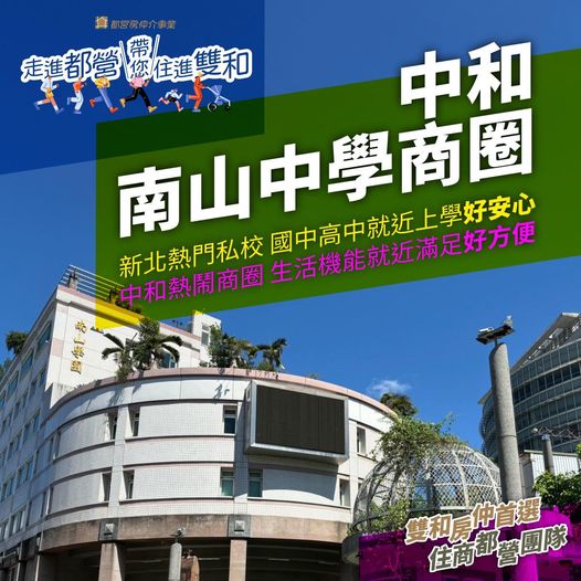 #南山中學 周邊的廣福路、中和路、景安路一帶,正是熱鬧的 #中和廟口商圈 ,食衣住行各項機能都很方便。#南山中學生活圈 算是中和早期發展的區塊,生活機能很成熟,附近是中和區行政機關的聚集地,傳統文教氣息濃厚;交通四通八達,距離捷運 #永安市場站 、捷運 #景安站 、捷運 #中和站 騎車都不用5分鐘,通勤往來台北市、或新北板橋、土城都很便利;尤其近年新北市政府大力整治「瓦窯溝」有很好的成效,讓附近多了一些綠意與生態步道,整體居住環境更加分👍👍👍