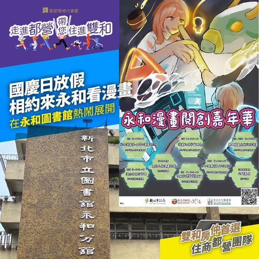今天是雙十國慶放假日,只有一天的假期,就跟著 #都營團隊 一起就近來永和圖書館看漫畫吧🤓