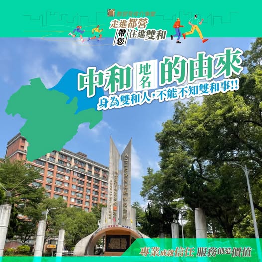 #都營團隊 #都營團隊 雙和在地深耕30年,帶您看遍中、永和這片美麗的城市,也要與您分享屬於雙和人的 #雙城故事 。今天,繼續來看看「中和地名的由來」🕵️♀️