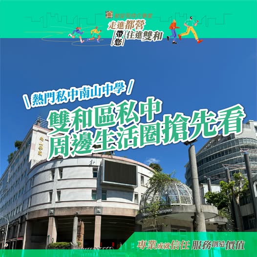 其實不只台北市有明星私中,咱們雙和區也有歷史久、口碑好的私立中學,今天 #都營團隊 就帶大家走進雙和,一起來看看 熱門私中之一的 #南山中學 周邊的生活環境~