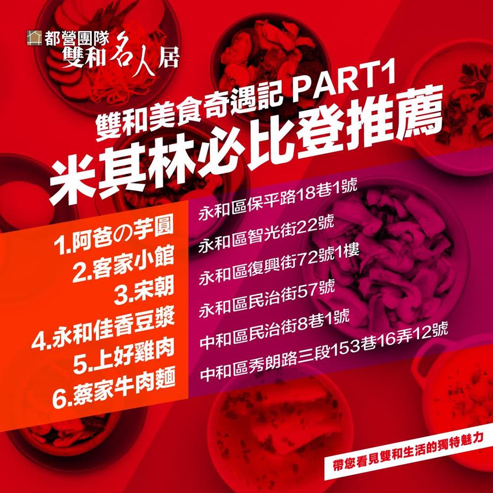 #都營團隊 透過 #雙和名人居 系列,帶您尋訪了許多雙和在地的人文故事&藝文傳奇,這個月咱們來換個口味,跟著美食界最具權威性的指標 #米其林必比登推介 一起來雙和”聞香下馬”,尚出名的雙和美食在哪裡?