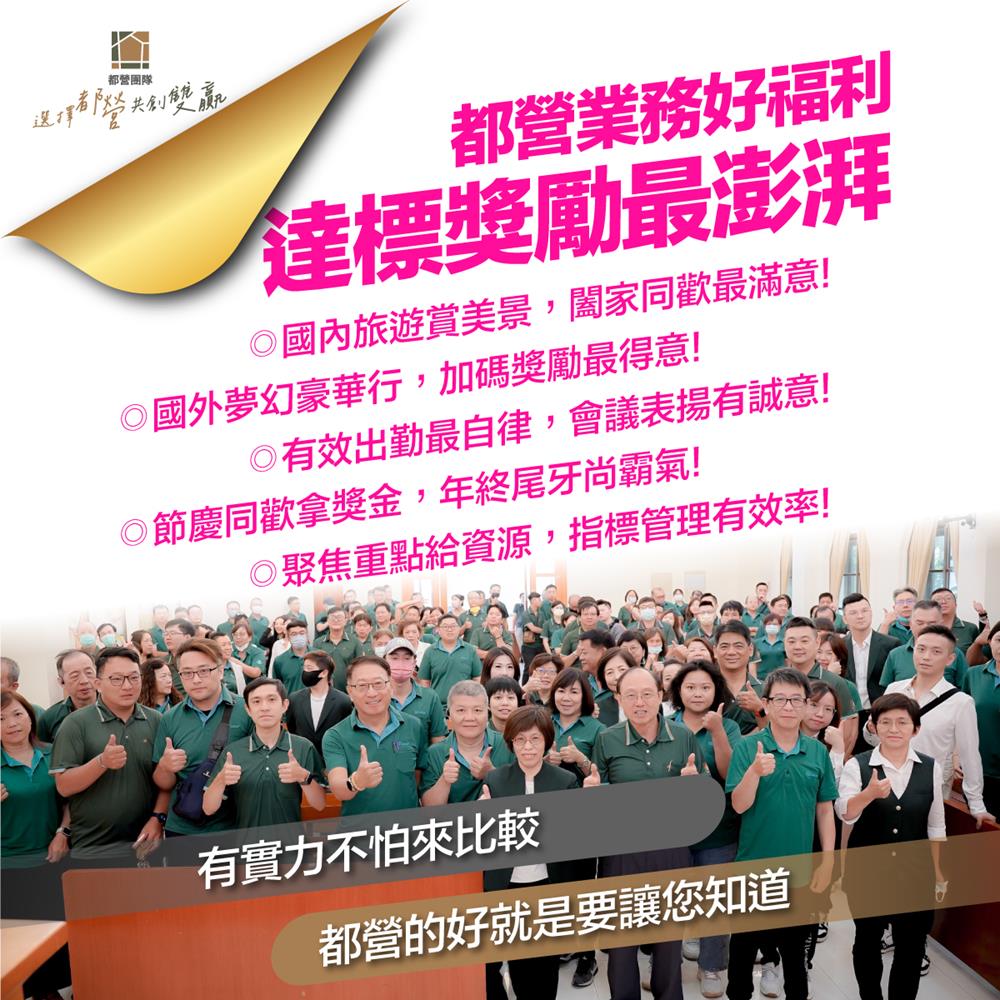 #都營團隊 深耕雙和30年,規模最大、福利最多,第四季關鍵衝刺期,想要挑戰自己、證明自己的業務高手,快來 #都營團隊 爭取屬於您的最高榮譽🏆