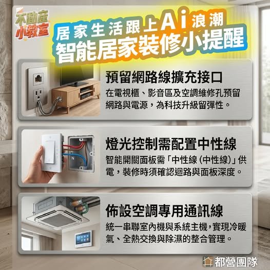 #都營不動產小教室 提醒嚮往智能宅便利生活的屋主們,智能居家並非僅需無線裝置即可完成,「完善的有線基礎」才是系統串聯與穩定運作的核心!