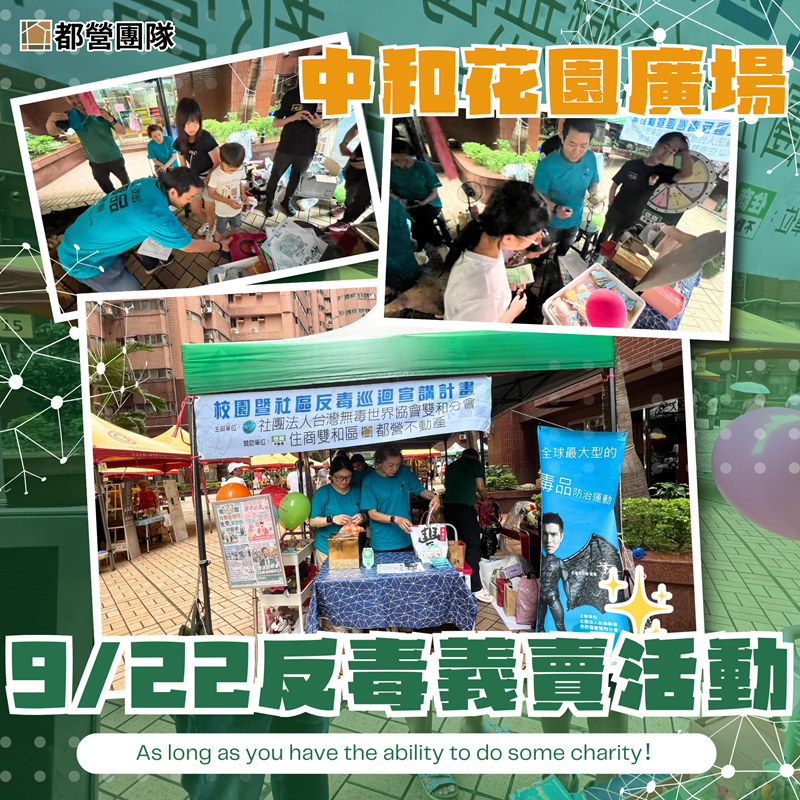 【9/22 中和花園廣場反毒義賣活動】